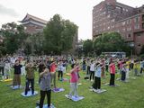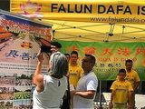 美国纽约曼哈顿街市交易会 西人学炼法轮功