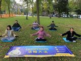 来自韩国京畿道光明市七十二岁的金洪泰,最近在家附近健身运动中停住了脚步,因为他看到了闭着眼睛静静地随着音乐缓缓炼功的法轮大法学员们。 -