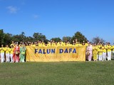 二零二一年十一月二十八日下午,风和日丽、气候宜人,在桃园龙潭运动公园,一群法轮功学员在大草坪上集体炼功,优美祥和的功法与炼功音乐,吸引着过往的人们,纷纷停下脚步观看和了解。 -