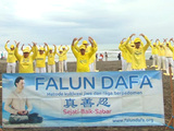 二零二二年三月二十日下午,印度尼西亚巴厘岛巴东区的部分法轮功学员在芒古海滩(Munggu Beach)举办集体炼功活动,并在海滩上向民众传播真相,征集反迫害签名。