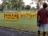 登巴萨市是印度尼西亚巴厘省省会和最大城市。二零二二年三月二十七日星期日上午,巴厘岛法轮功腰鼓队队员聚集在登巴萨(Denpasar)集体炼法轮功功法,接着演奏“法轮大法好”等歌曲。