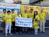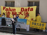 中共领导人到访巴黎 法轮功学员中使馆前抗议迫害