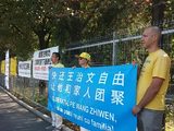 纪念四二五 荷兰法轮功学员中领馆和平抗议