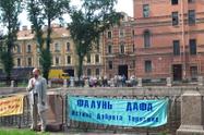 圣彼得堡法轮功学员们每天坚持在中国驻圣彼得堡领馆门前举行抗议活动,希望以此引起社会各界人士对现在正发生在中国的对法轮功信仰者们惨无人道的和非法迫害的关注。学员们展出的横幅上用中俄文写着:立即停止对法轮功的迫害!