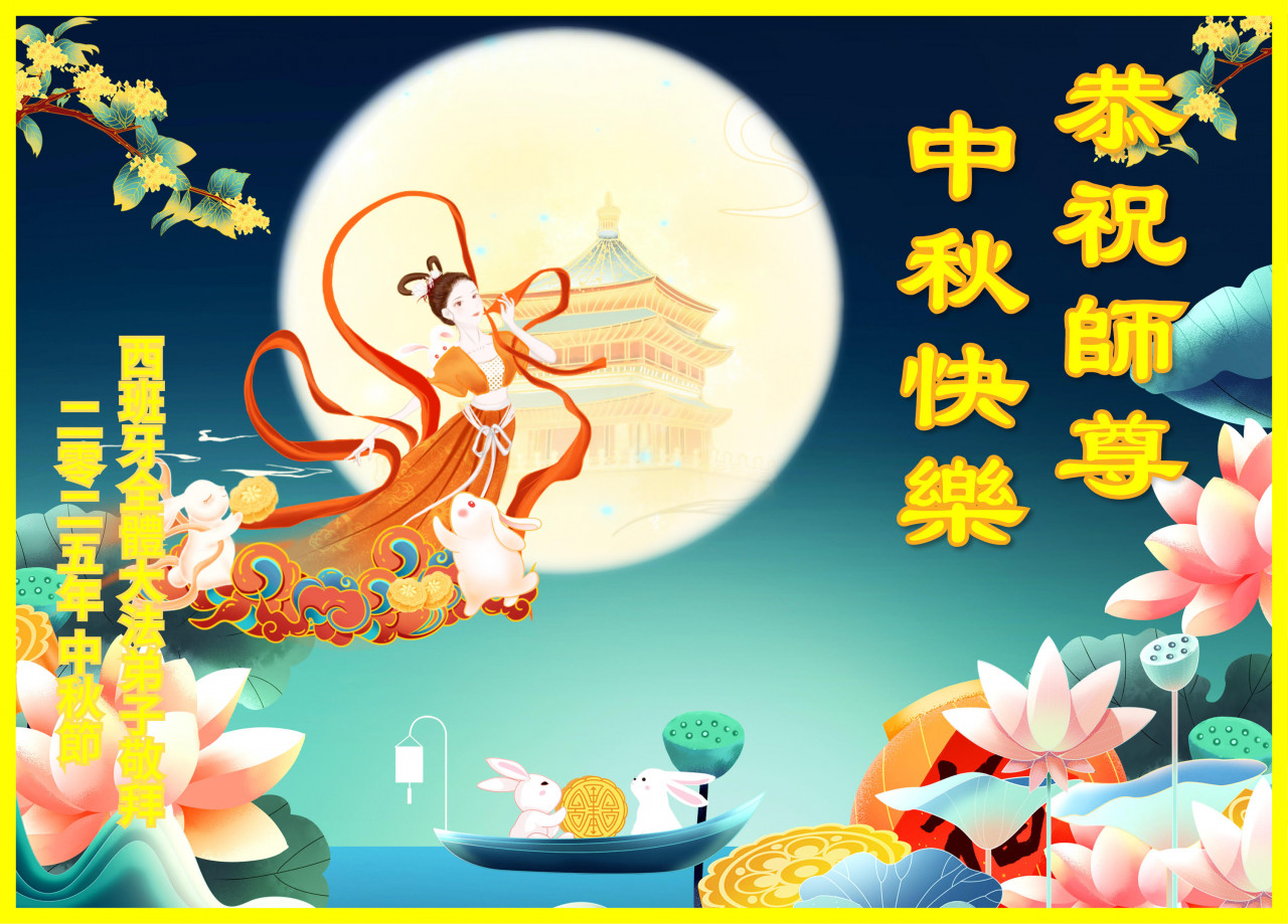 中秋佳节又至,法国大法弟子谨在此敬颂神恩的传统节日里,诚挚的向伟大的师尊问好。弟子与众生们都无限感恩师父的慈悲苦度,恭祝慈悲伟大的师尊中秋快乐! -