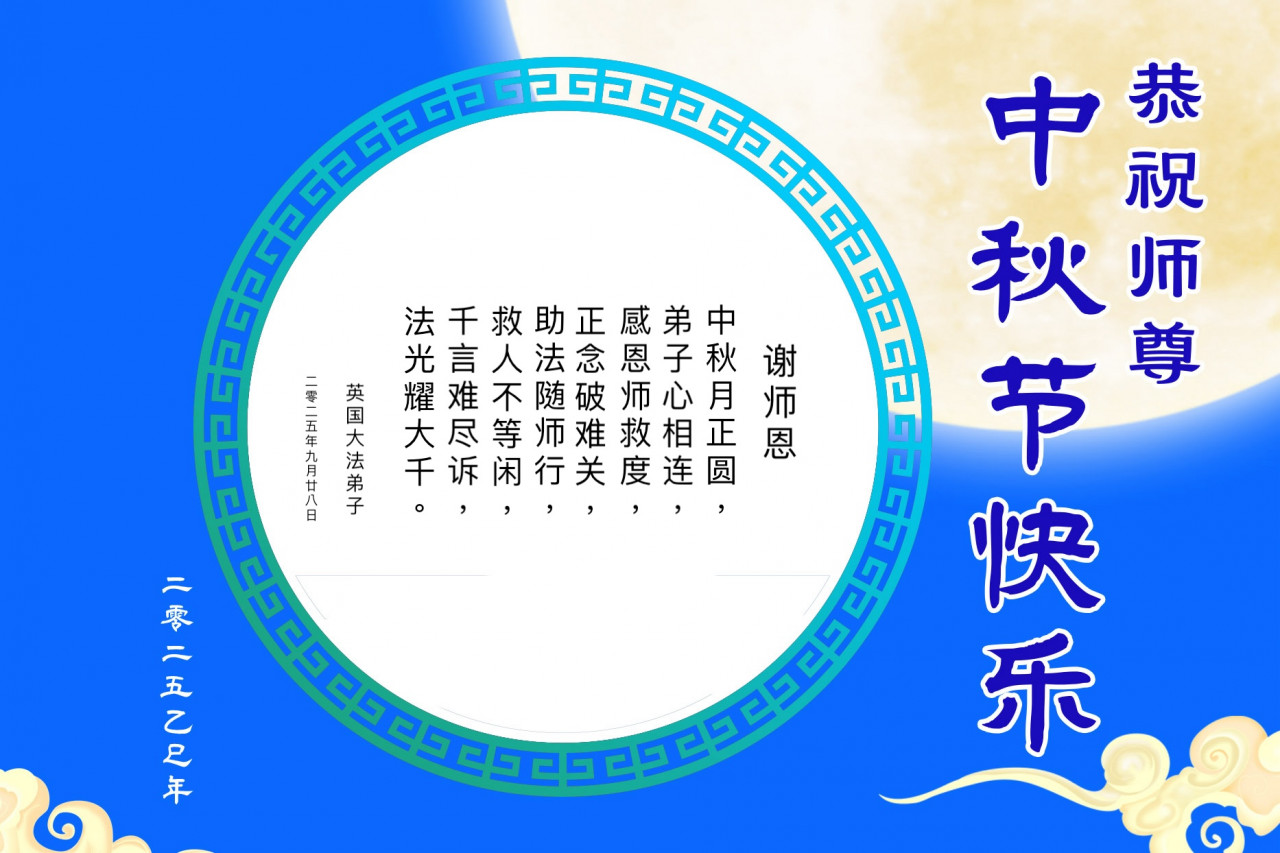 英国全体大法弟子谢师恩 恭祝师尊中秋节快乐!