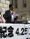 纪念四二五 西班牙学员中使馆前反迫害(图)