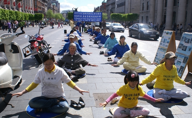 二零一零年四月二十四日,爱尔兰法轮功学员举办活动纪念十一年前“法轮功学员万人和平上访”。一九九九年四月二十五日,万名法轮功学员前往北京府右街国务院信访办和平、理性上访,要求给法轮功合法宽松的修炼环境。法轮功学员在上访过程中展示了修炼人的大善大忍、和平理性、纯正的道德风范,令举世瞩目。 -