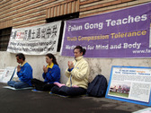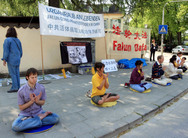 为纪念“四二五”这个特别的日子,比利时法轮功学员来到布鲁塞尔中领馆前炼功和打坐,抗议中共对法轮功的迫害。比利时法轮功学员每年都会在这里举行抗议中共迫害的活动。比利时法轮大法学会负责人尼古拉斯说:“我真心希望有一天,我们不用再坐在这里,而且包括中国在内的全世界的人,都能够自由地修炼法轮功。” -