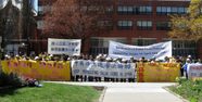 二零一零年四月二十三日中午,加拿大多伦多上百名法轮功学员及支持者在中国领事馆前集会,纪念十一年前的“四·二五”——“万名法轮功学员和平上访”这一书写辉煌的日子,同时举行新闻发布会,呼唤正义良知,制止中共迫害法轮功。