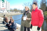 二零一零年四月二十四日,瑞典大法弟子聚集在中国驻哥德堡市的领事馆前,纪念大法弟子在中南海和平上访十一周年 ,抗议中共迫害法轮功学员的种种残暴罪行。很多瑞典路人前来索取传单,并了解有关“四·二五”事实真相。